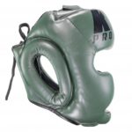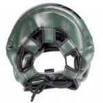 Casco protector resistente fabricado con materiales de alta calidad Skintex, multicapa para absorción de golpes, protección en pómulos y mentón, cierre trasero acolchado, sistema de cierre con cuerdas en la parte superior de la cabeza.